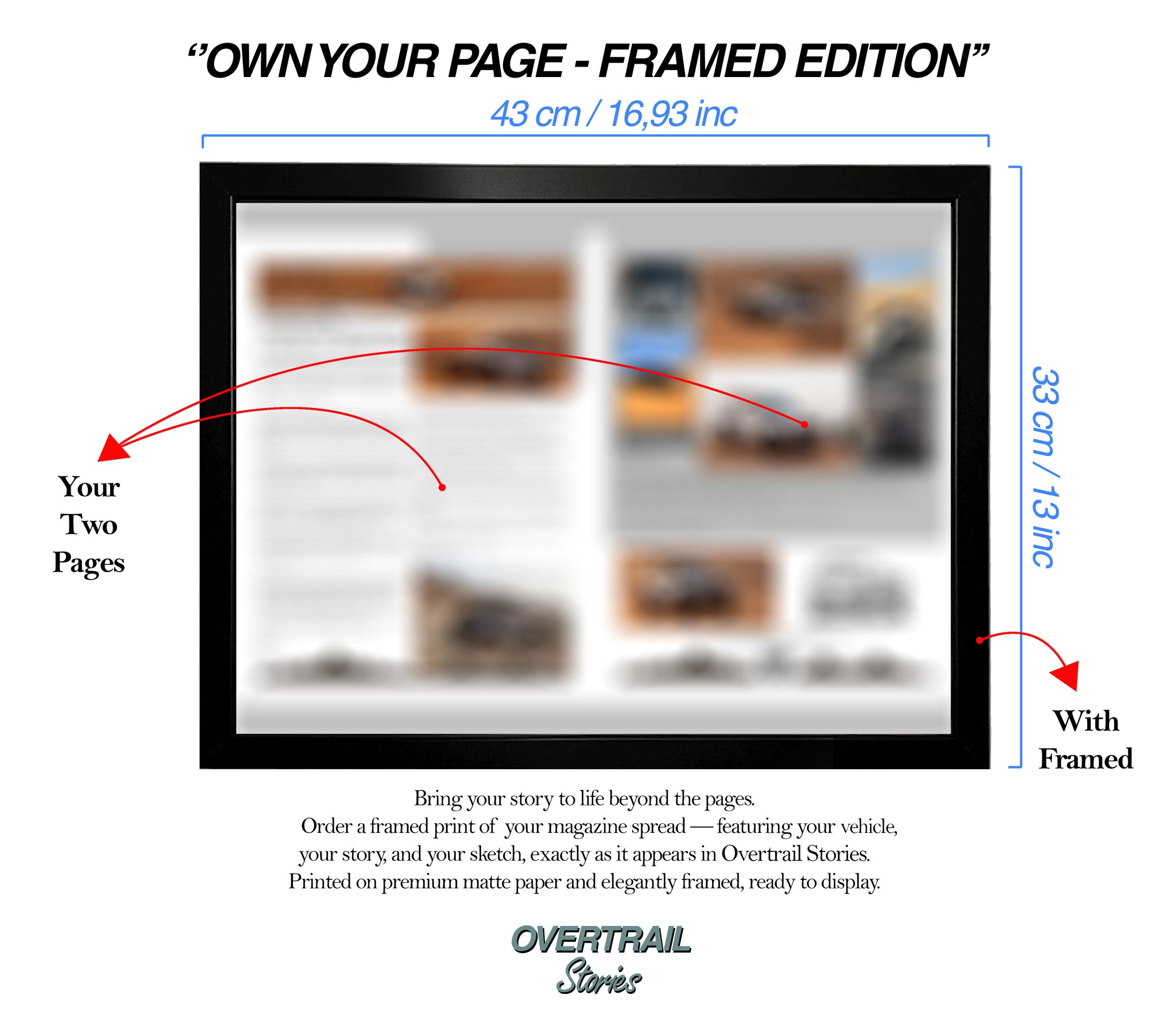 Celebrate your vehicle’s appearance in the first issue of Overtrail Stories with this exclusive framed print.