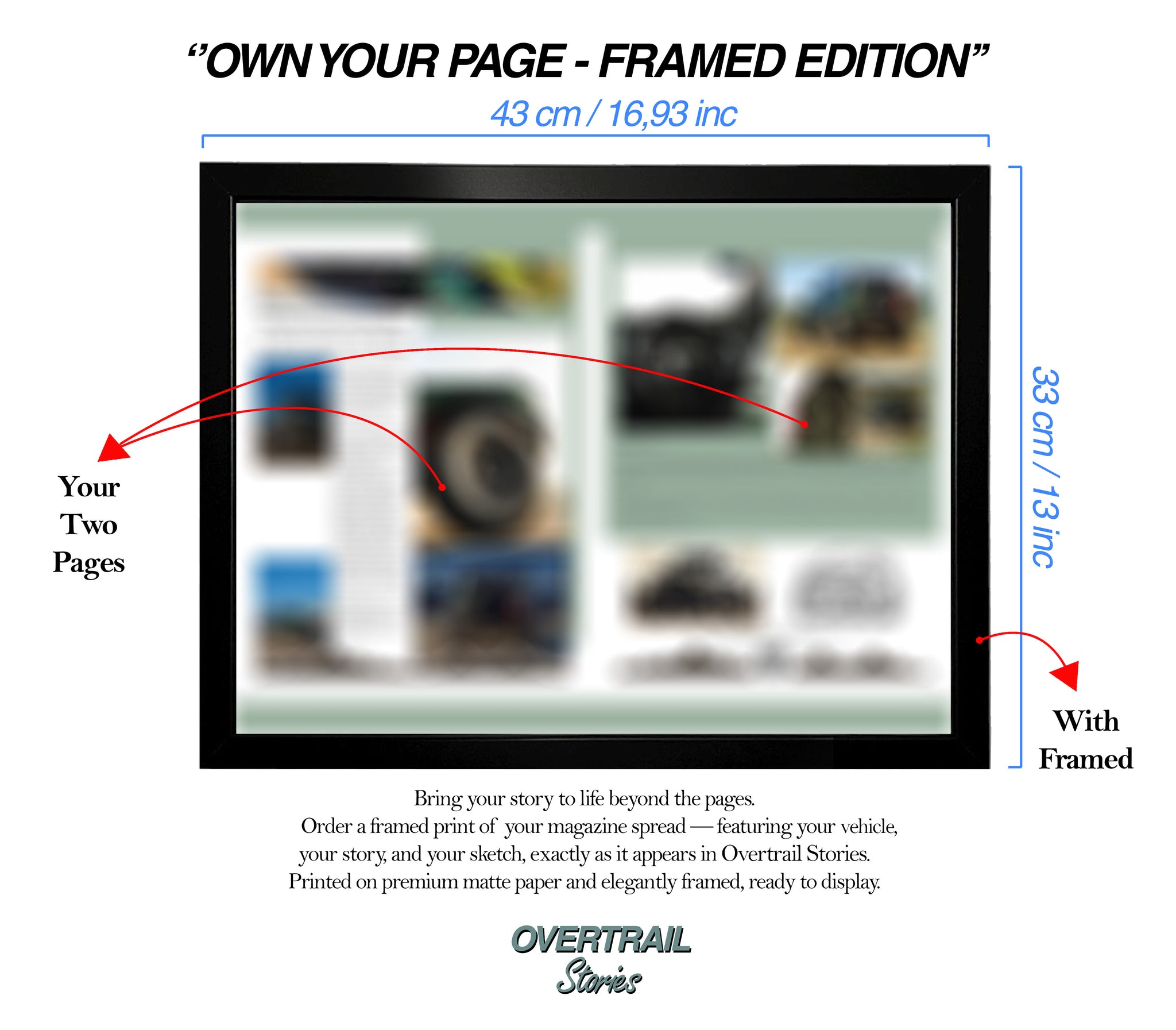 Celebrate your vehicle’s appearance in the first issue of Overtrail Stories with this exclusive framed print.