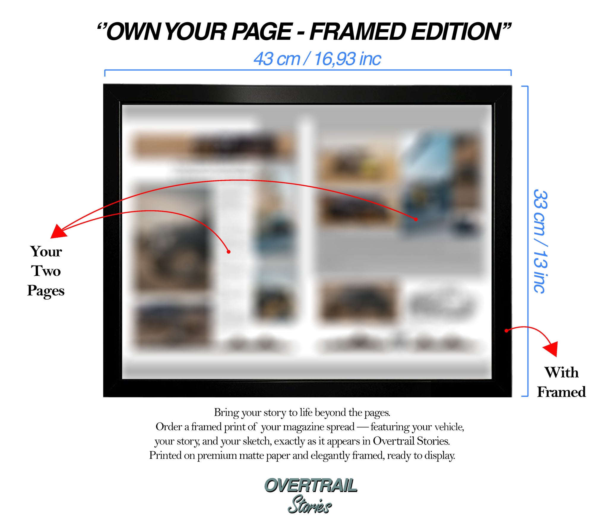 Celebrate your vehicle’s appearance in the first issue of Overtrail Stories with this exclusive framed print.