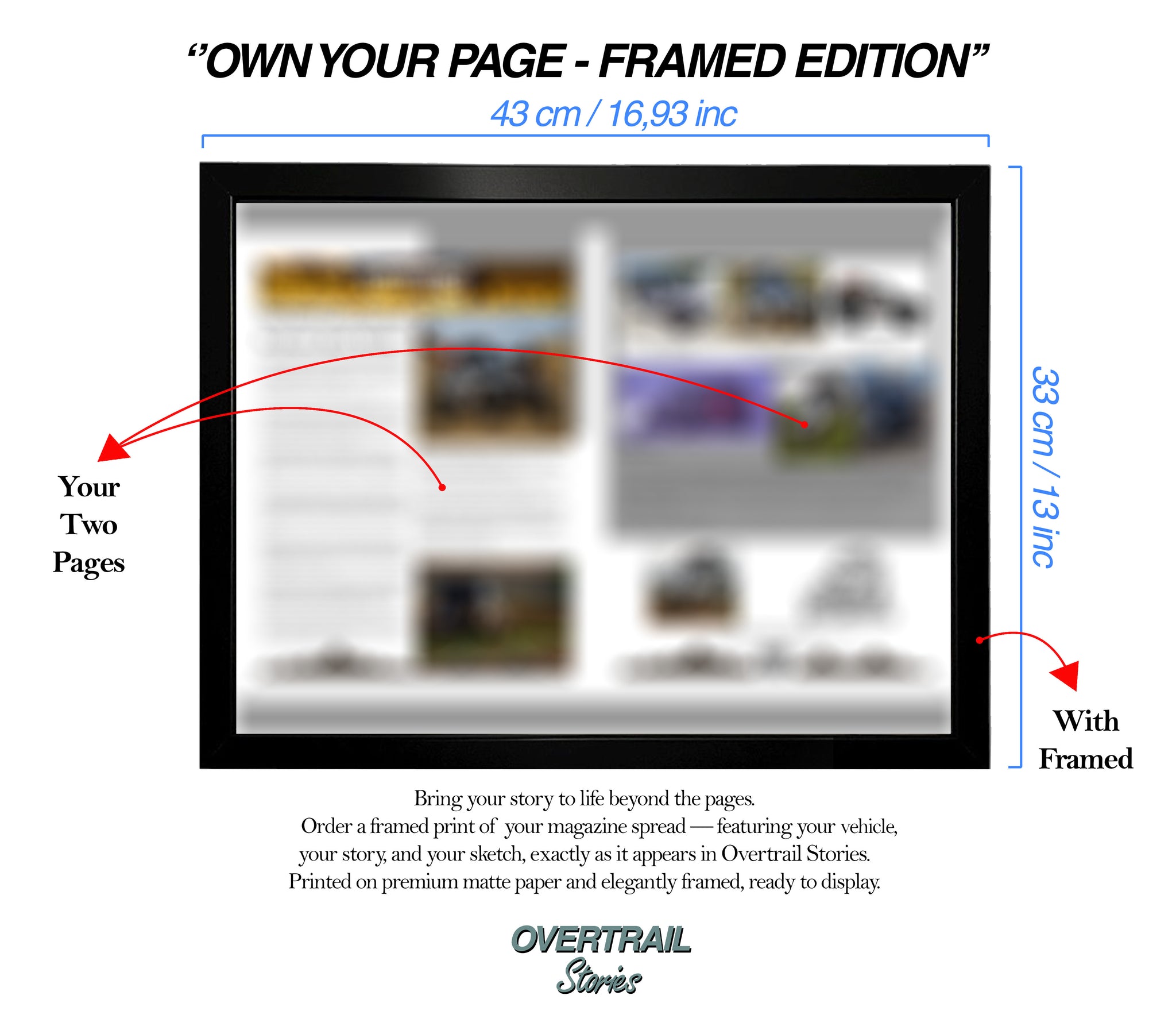 Celebrate your vehicle’s appearance in the first issue of Overtrail Stories with this exclusive framed print.