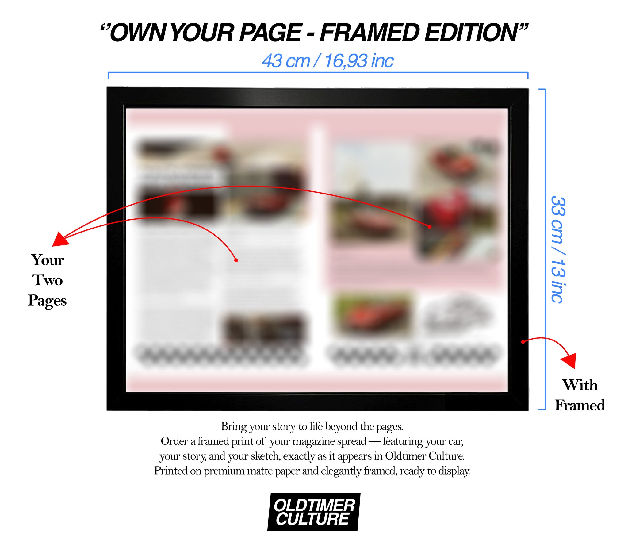 Celebrate your car’s appearance in the first issue of Oldtimer Culture with this exclusive framed print.