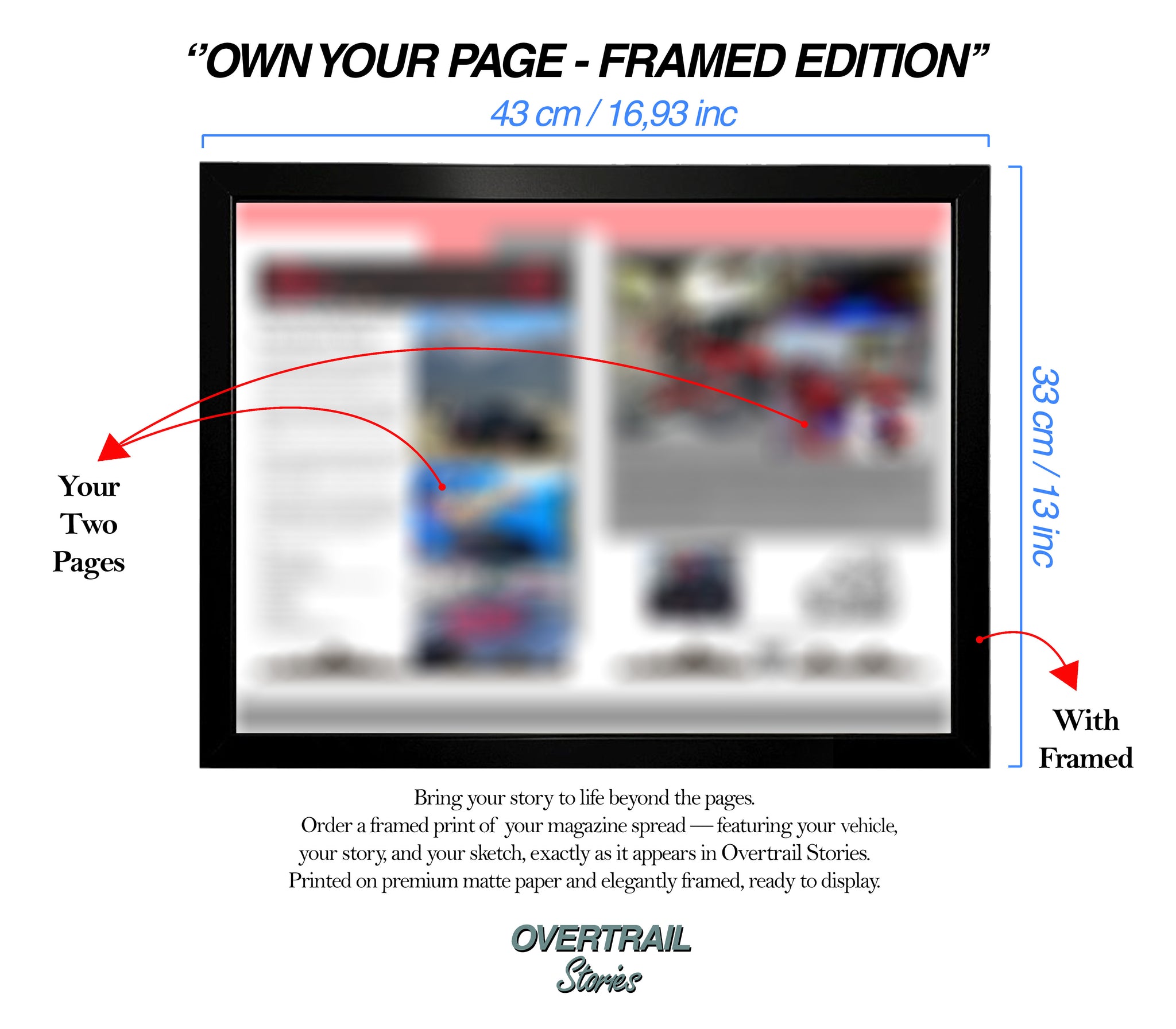 Celebrate your vehicle’s appearance in the first issue of Overtrail Stories with this exclusive framed print.