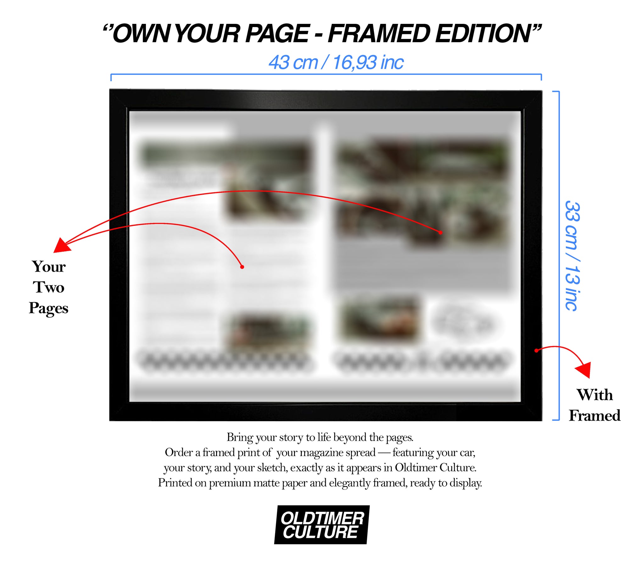 Celebrate your car’s appearance in the first issue of Oldtimer Culture with this exclusive framed print.