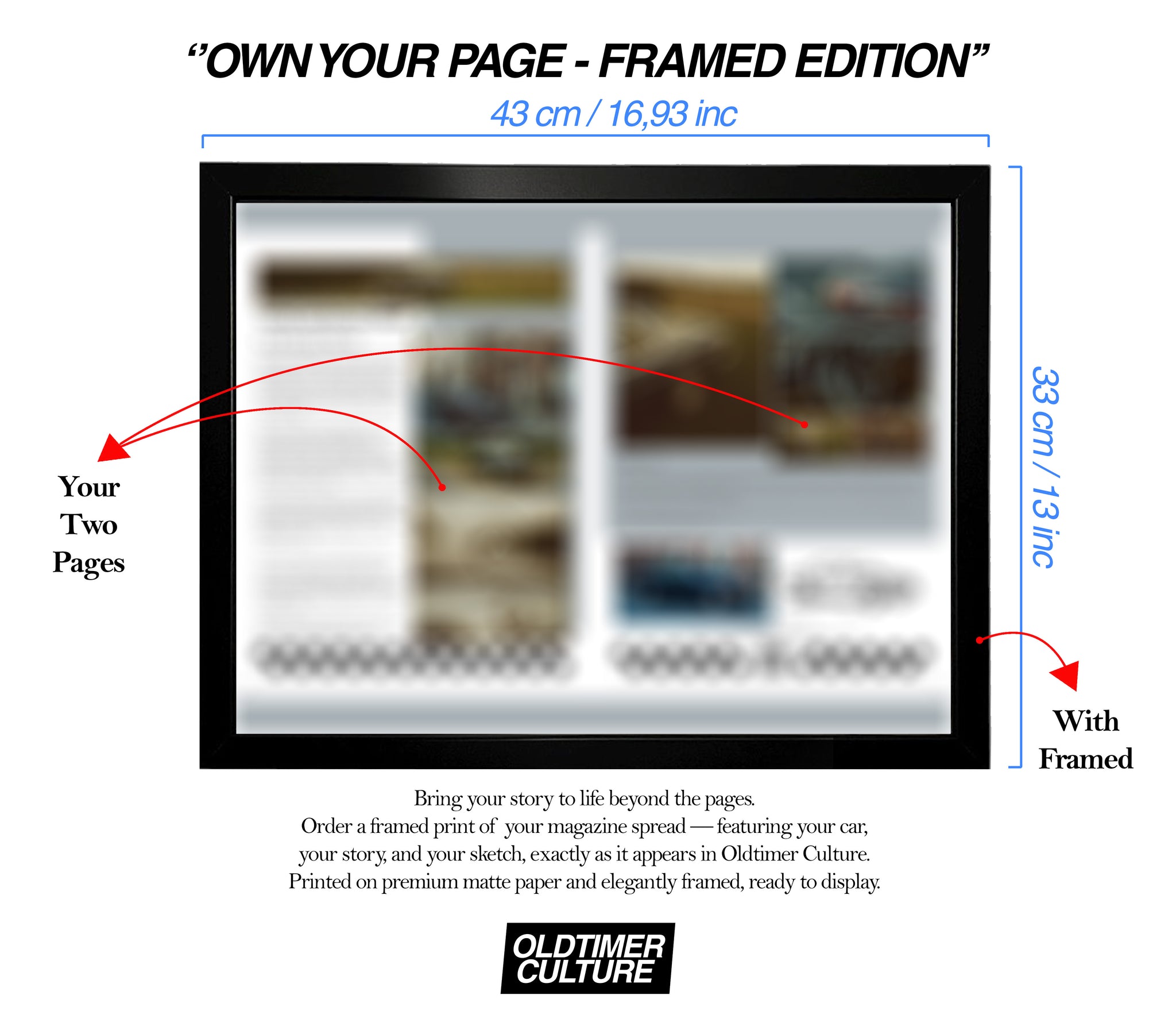 Celebrate your car’s appearance in the first issue of Oldtimer Culture with this exclusive framed print.