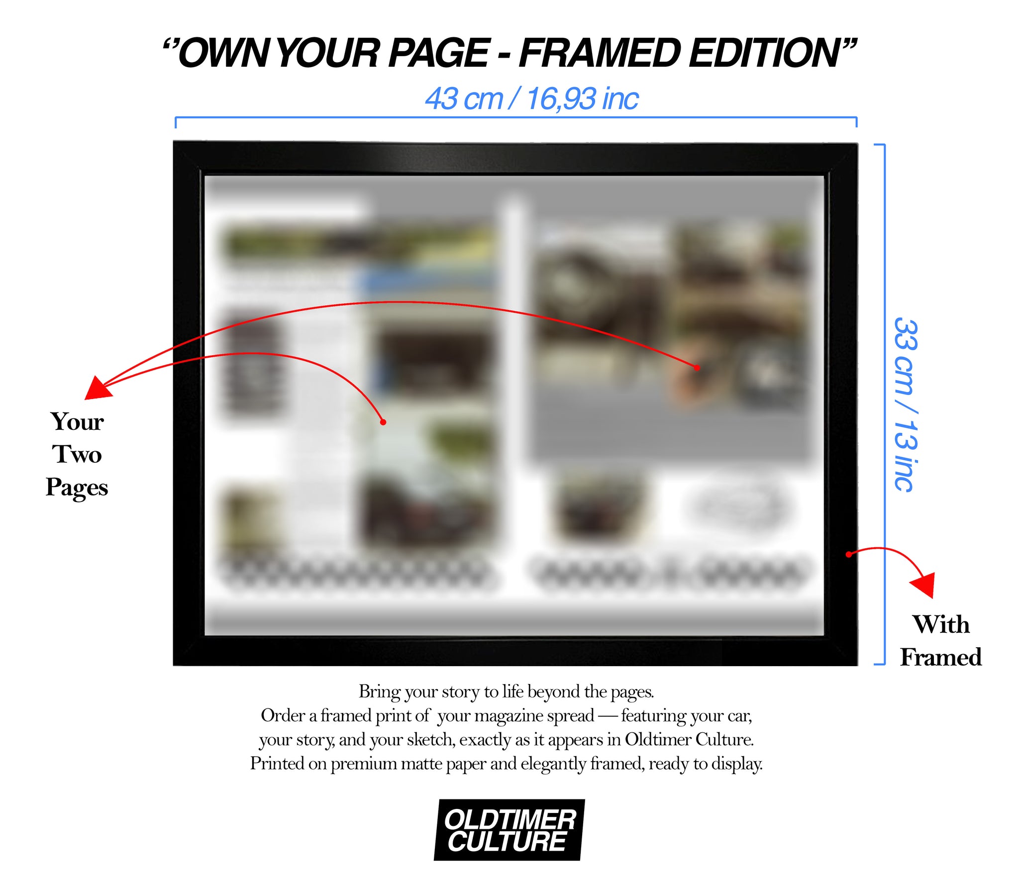 Celebrate your car’s appearance in the first issue of Oldtimer Culture with this exclusive framed print.